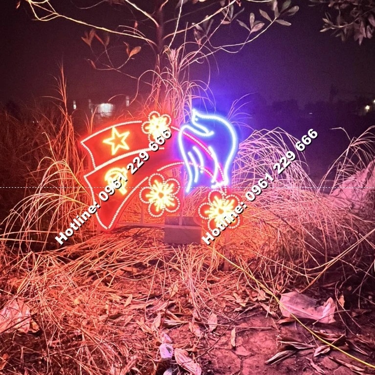 Hoa văn trang trí đường phố, đèn trang trí đô thị bao gồm hệ thống: dải đèn hoa led trang trí ngang đường phố, hoa trang trí cột điện, đài phun nước công nghệ led, đèn pha chiếu cây, hoa sen 3d treo cột đèn chiếu sáng, đèn cảnh quan, đèn sân vườn, cây hoa đèn led (cây hoa nhân tạo).