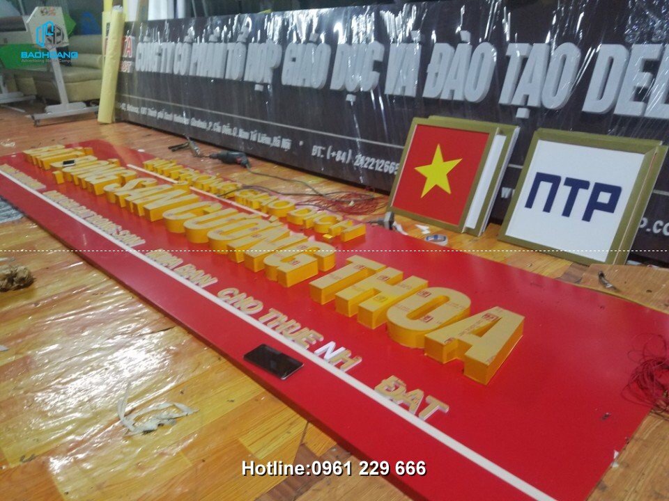 – Biển quảng cáo chữ nổi tôn sơn tĩnh điện, thi công biển chữ nổi gỗ.