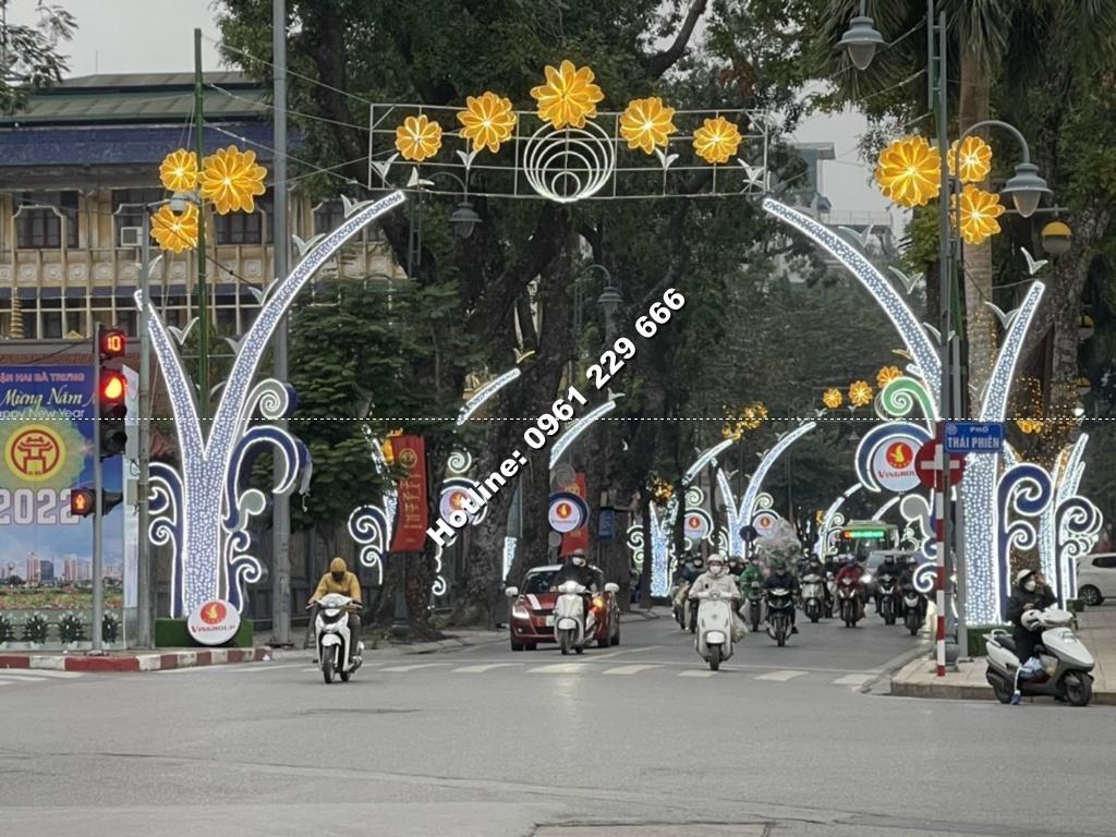 Trang trí dải ngang đường: Bảo Hoàng thiết kế và lắp đặt các dải trang trí ngang đường, mẫu trang trí cổng chào, với họa tiết ấn tượng, màu sắc bắt mắt. Thiết kế chữ nghệ thuật và hoa trang trí ngang đường bằng kỹ xảo tạo hình khắt khe, chuẩn xác giúp làm nổi bật các con phố về đêm hay trong các dịp lễ trọng đại.