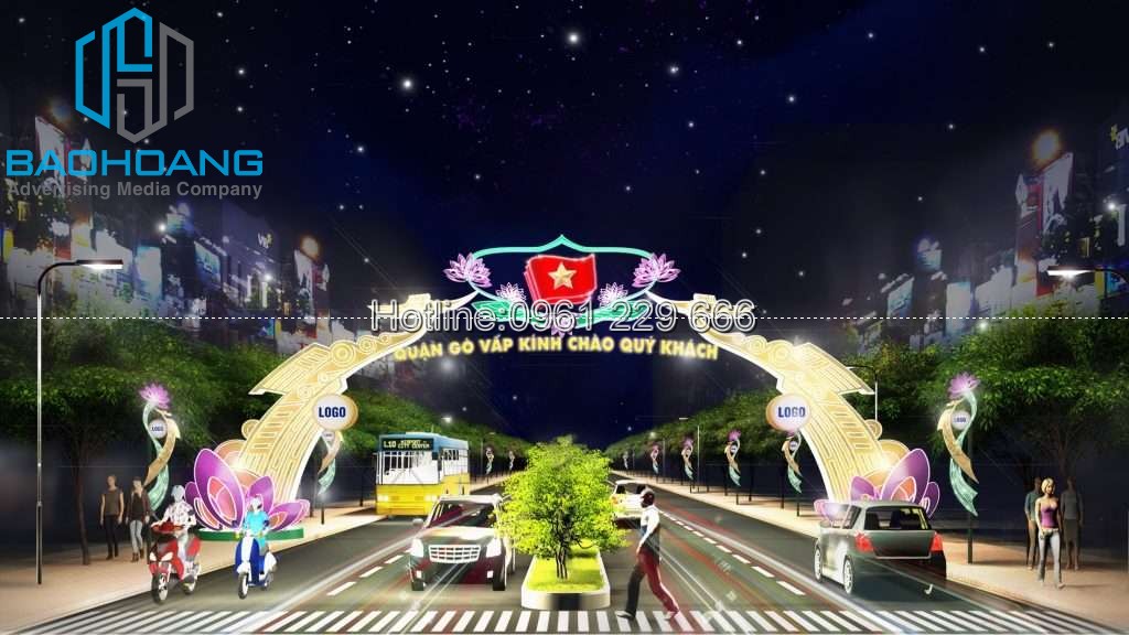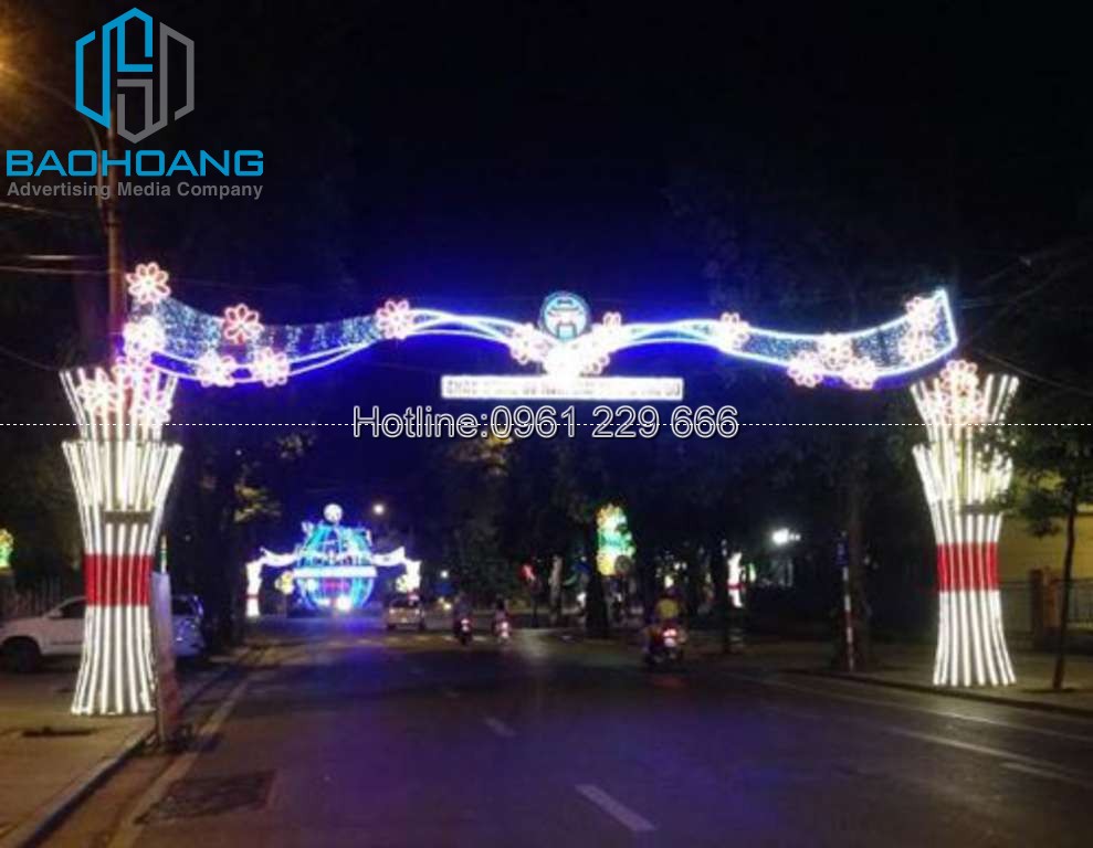 Nhằm đáp ứng nhu cầu đa dạng của khách hàng, Bảo Hoàng cung cấp các dịch vụ trang trí cổng chào bằng công nghệ led, các hạng mục thuộc về trang trí đường phố như: dải ngang đường, mẫu trang trí cột điện, trang trí cổng chào đô thị, trang trí cổng chào sự kiện, trang trí cây, cổng chào, bờ hồ, bờ kè… chúng tôi xin giới thiệu với quý vị một vài mẫu cổng chào trang trí đường phố. Thi công cổng chào Hiện nay, trên thị trường xuất hiện rất nhiều đơn vị thi công lắp đặt cổng chào quảng cáo tại các hệ thống bán lẻ như siêu thị, siêu thị điện máy.. các khu trung tâm như chợ, hội chợ... xưởng sản xuất Bảo Hoàng là một trong những đơn vị uy tín với kinh nghiệm thi công lắp đặt cổng chào quảng cáo nhanh và đẹp tại TP. Hà Nội và cả nước.
